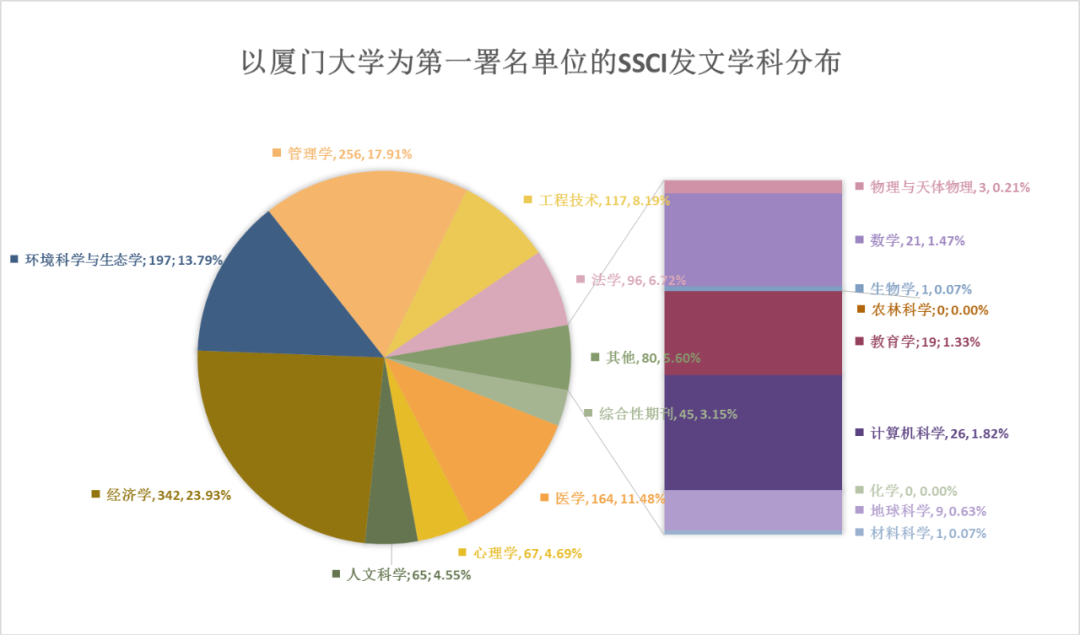 图2:以厦门大学为第一署名单位的SSCI发文学科分布
