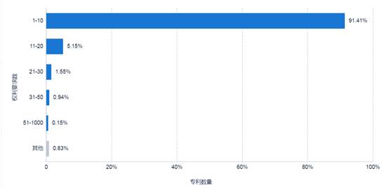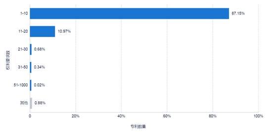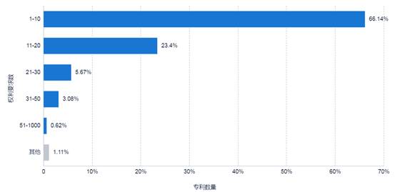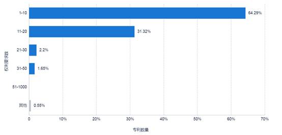 图2.6 昆山市石墨烯专利权利要求数分布(排除WO专利)