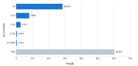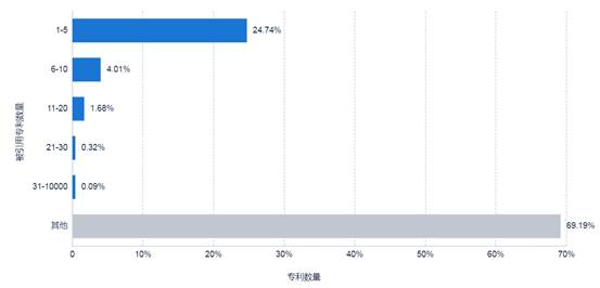 图1.14 厦门市第三代半导体专利被引用次数分布