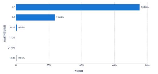 图2.7 昆山市石墨烯专利独立权利要求数分布(排除WO专利)