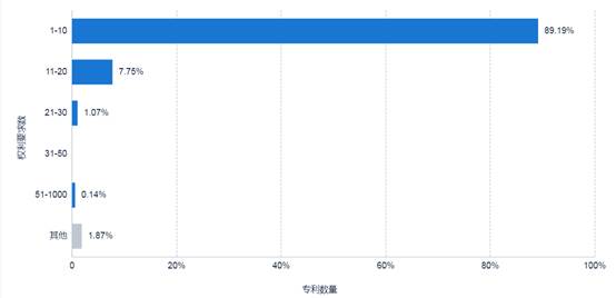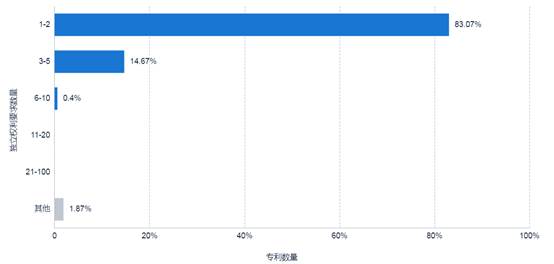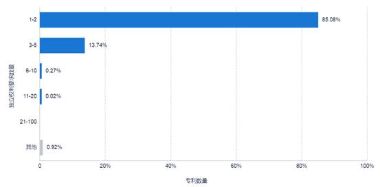 图1.7 昆山市第三代半导体专利独立权利要求数分布(排除WO专利)