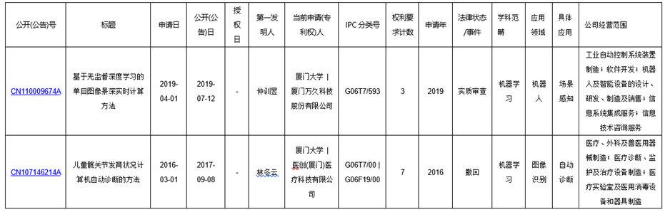 如表3-1所示,实验室有2件专利(CN110009674A和CN107146214A)为厦门大学与公司共同申请,应用领域分别为机器人和图像识别(医疗)。合作公司的主营业务与专利的应用领域一致,但2件专利均未授权,其中CN110009674A处于实审状态,CN107146214A已处于撤回状态,此外未见有专利转移和许可事项。上述信息表明,实验室需保护的产学研成果较少,实验室的科技成果转移转化以横向课题、技术支持为主。